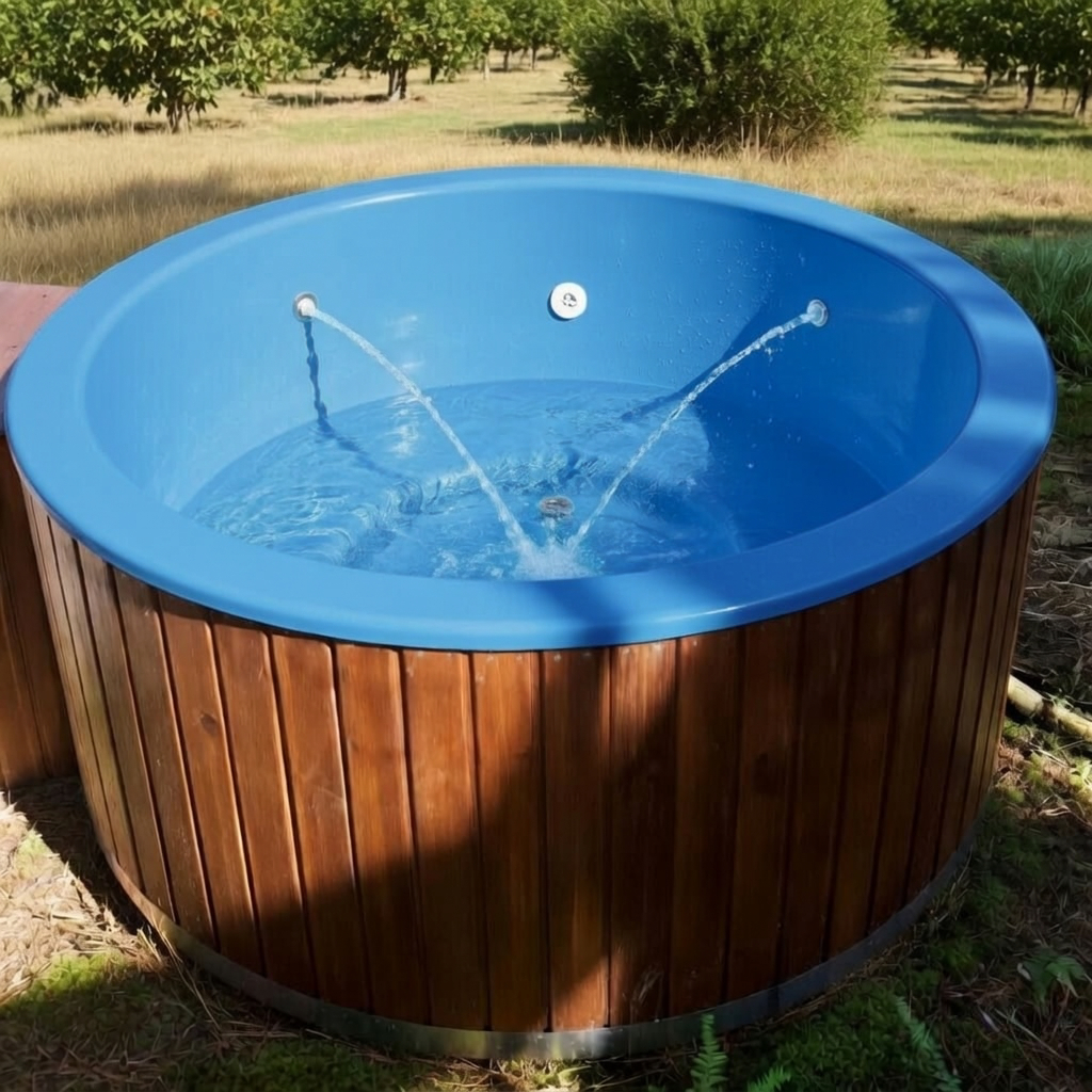 Nuestra tina circular de gran formato, perfecta para grupos o familias. Ofrece una ergonomía superior y gran volumen de agua, construida con materiales de alta resistencia para disfrutar en cualquier clima.